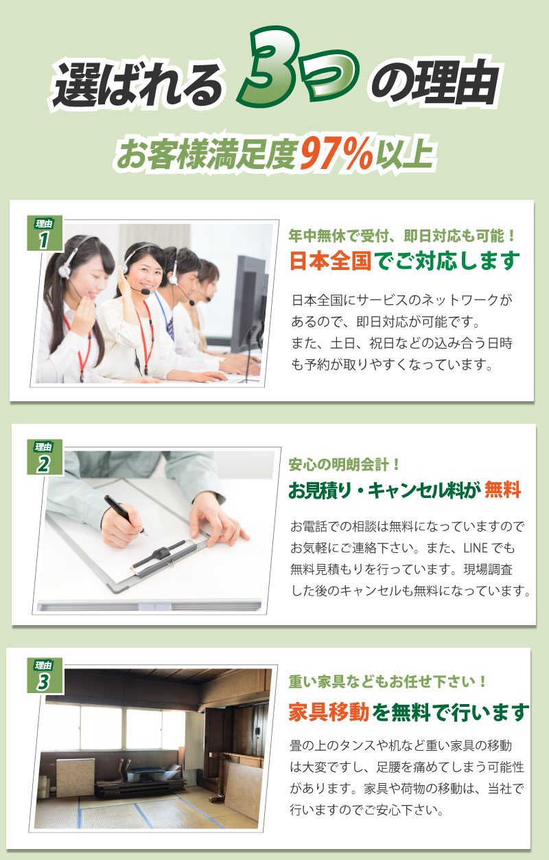 畳や襖、障子の張り替えを業者に依頼する場合、前もってどの程度の価格帯なのか、相場を知っておくのと知らないのとでは選ぶ業者も変わってきます。出来れば、なるべく安く請け負ってくれる業者を選びたいところですよね。まずは畳・襖・障子全てに言えることとして、事前に複数の業者が公開している情報を確認し、どのようなサービスがどの程度の料金で受けられるのか見比べてみましょう。次に種類別の大まかな平均価格をご紹介します。襖の張り替えは大体5〜10年ごとが目安と言われており、1面あたりの相場は2,500円〜3,900円となります。ふすま紙の種類によっても変動します。障子の張り替えは1枚2,500円〜4,000円程度で、耐用年数はおおよそ5年と言われています。こちらも、障子紙の種類を選ぶことで料金の変動があります。畳は張り替え方法によって料金が大きく異なり、裏返しが1畳あたり約2,000円〜5,000円、表替えは1畳あたり約4,000円〜20,000円、新畳で1畳あたり約10,000円〜25,000円となります。張り替えをする畳の種類によっても変わってきますので、ご自宅で使用されている畳の種類や質、交換する場合は新しく張り替えたい畳の種類を決めておくと良いでしょう。畳の交換・修理の目安は、通常の場合3〜5年ほどで畳表を裏返し、7〜8年ほどで畳表を新しいものに張り替えます。汚れ・変色が目立つ場合、そこから劣化していくため注意が必要です。経年劣化による目立つ傷や汚れなどは避けられない問題ですが、張り替え作業を行うだけでも、新調するのと変わらない程見た目の印象が変わります。畳の場合はささくれ等が原因の怪我予防や畳の素材による空気清浄効果、障子や襖は防音や断熱・気温調節効果も期待できます。気分転換になるのは勿論、日々を快適に生活するために、予算に合ったリフォームを行ってみてはいかがでしょうか。